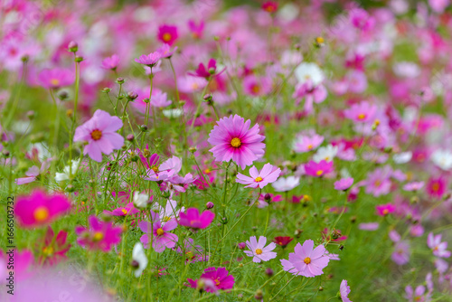 © Kazutaka, Naklejka premium ピンクと白のコスモスが咲く秋の花畑
