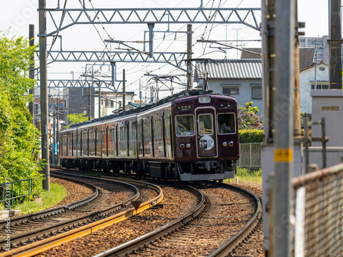 © しょこまろん, Obraz premium カーブを走る能勢電鉄の5000系電車
