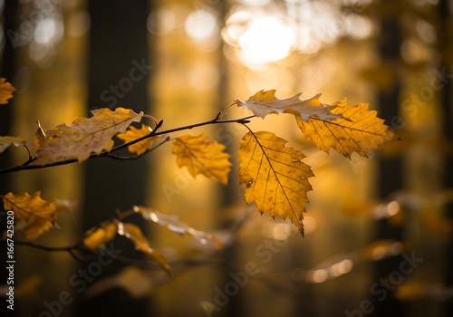 Obraz premium 秋の黄葉、木漏れ日と葉