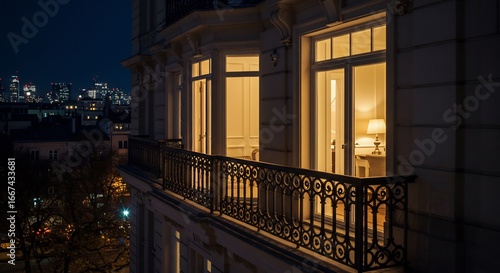Obraz premium 夜景の美しいバルコニーのある建物