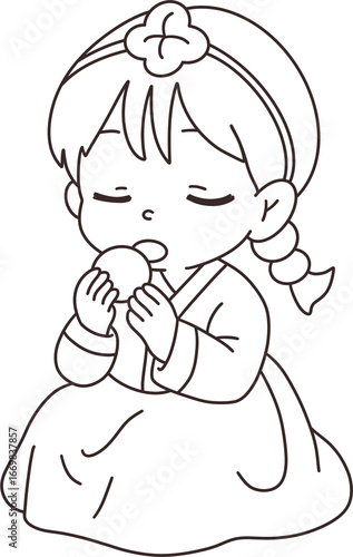 Obraz premium 한국 전통 명절 추석을 위해 한복을 입은 어린이들 색칠공부놀이