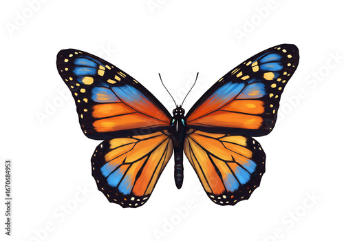 © Heini, Fototapeta premium 鮮やかなオレンジとブルーの蝶、闇夜に舞う幻想的なイラスト