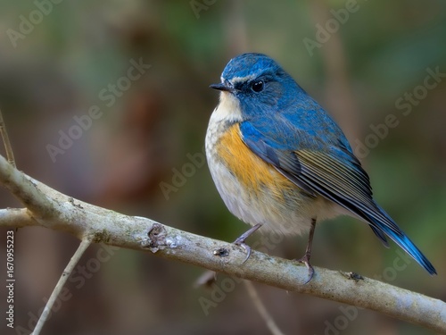 Fototapeta premium 森で周りを見渡しているルリビタキのオスのクローズアップ