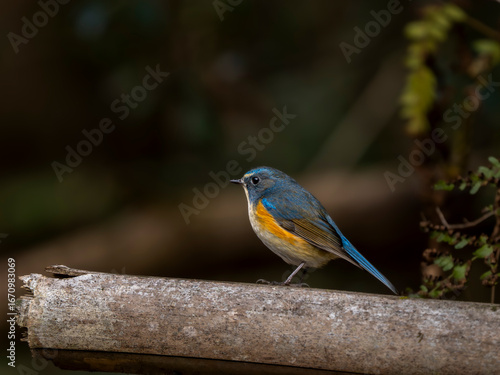 Fototapeta premium 森で周りを見渡しているルリビタキの雄