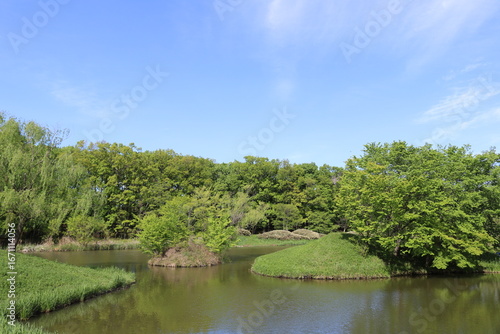 © ペパーミント, Fototapeta premium 池のある公園 癒しの新緑