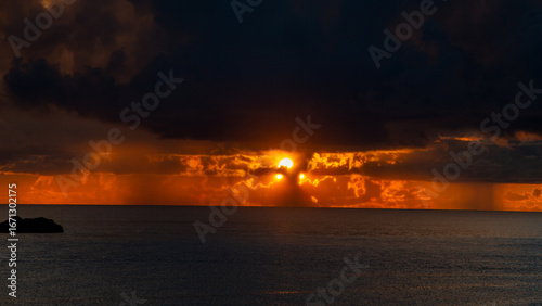 Naklejka premium 奄美の夕景。イメージ。夏雲。