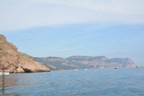 © Юлия Бурмистрова, Naklejka premium горы море цветы фрукты кот небо люди