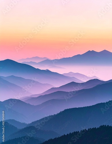 Fototapeta premium 淡いオレンジからピンクへの美しいグラデーションの日の出の空