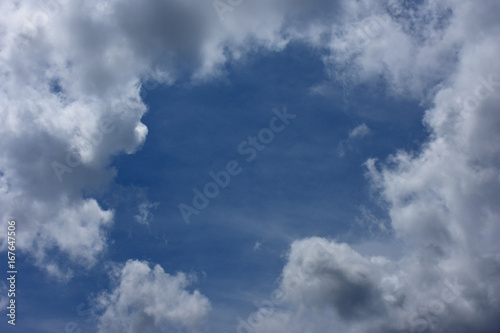 Obraz premium 雲間に広がる青空「空想・雲のモンスターたち(青空を見つめるモンスターのイメージと青空のシルエットが甘いお菓子のようなイメージなど)」未来をあまく見る、あま...