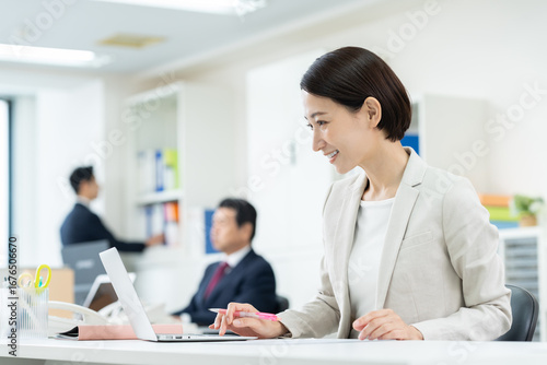 © pain au chocolat, Fototapeta premium オフィスで働くミドルのビジネスウーマン
