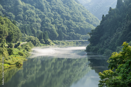 Fototapeta premium 新緑の只見川の朝