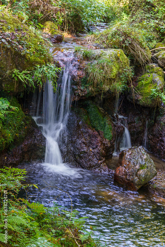Fototapeta premium 木漏れ日が差し込む森の中の滝