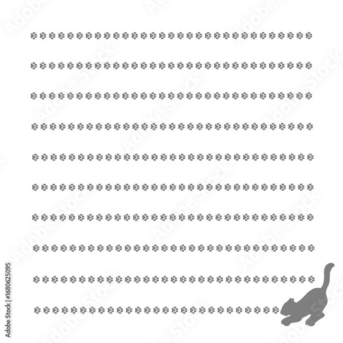 © mimi, Fototapeta premium 猫の足跡×伸び猫シルエットが可愛い癒し系メモ帳&便箋_グレー