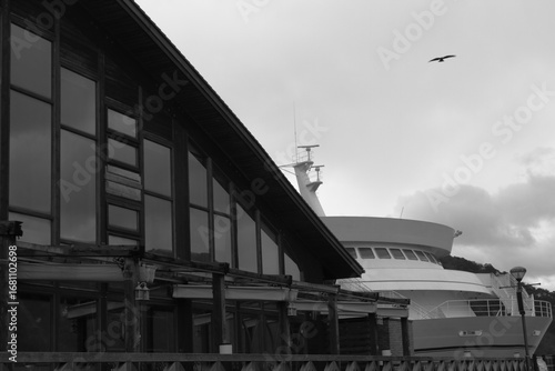 Obraz premium 屋根の上を飛ぶ鳥