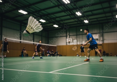 © Kazuki, Fototapeta premium バドミントン選手が緑のコートでプレーする様子