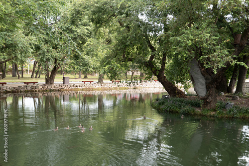 © sephoto, Fototapeta premium 비가 내리는 흐린 날 빗줄기 사이로 보는 남원 광한루 풍경