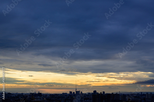 Obraz premium 都市の夜明け 神戸市東灘区のマンション屋上より大阪方面をのぞむ