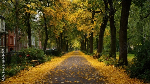 © Cocco Neil., Obraz premium イチョウの葉っぱが降り積もった道