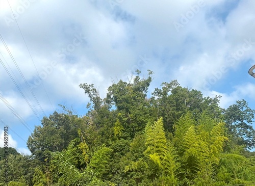 Obraz premium 青い空に生い茂る青々とした森