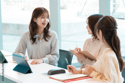© studio 66, Obraz premium グループワークをする3人の女子大生
