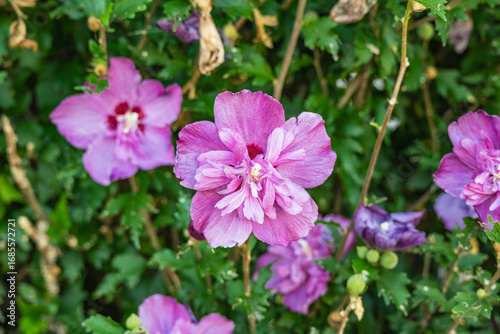 © kikisora, Fototapeta premium 庭で咲くムクゲ