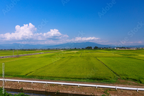 Obraz premium 夏の日差しに輝く田園風景