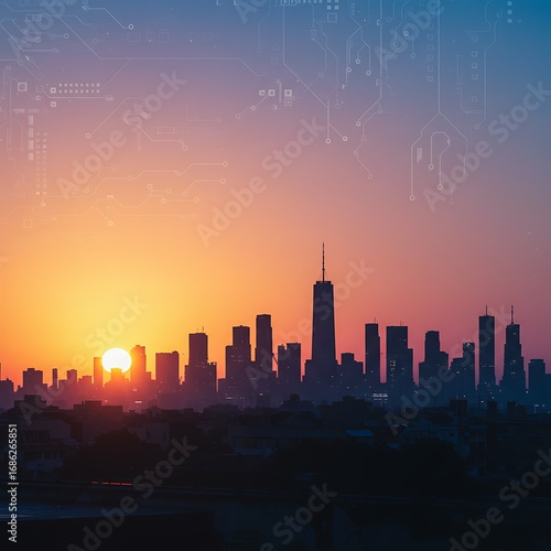 © Dao, Fototapeta premium 暁の回路都市