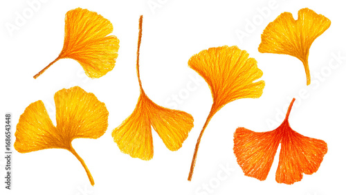 Obraz premium 手書きイラスト風のイチョウの葉素材01