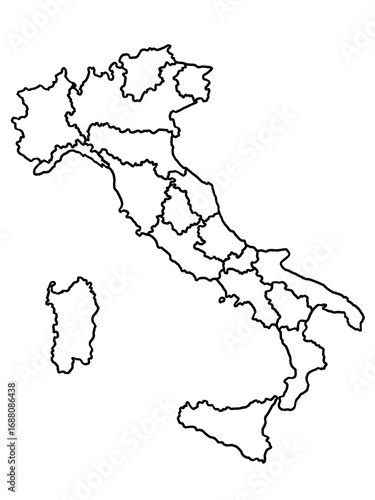 Obraz premium イタリアの地図(白地図)境界線入り