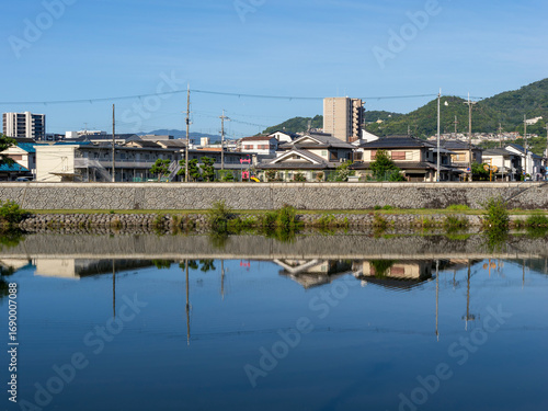 © しょこまろん, Fototapeta premium 川沿いに広がる住宅街の風景
