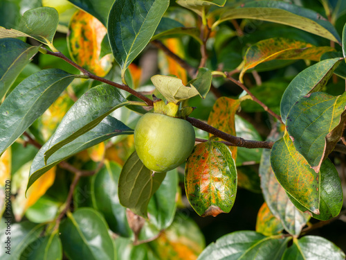 © しょこまろん, Obraz premium 果実を付けた五月山の柿の木