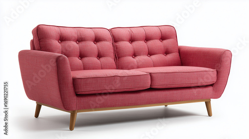 © Iori, Fototapeta premium モダンな空間に合うおしゃれな赤色の二人掛けソファ