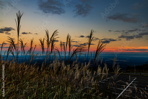 Obraz premium 栗駒山 夕焼けに染まるススキ