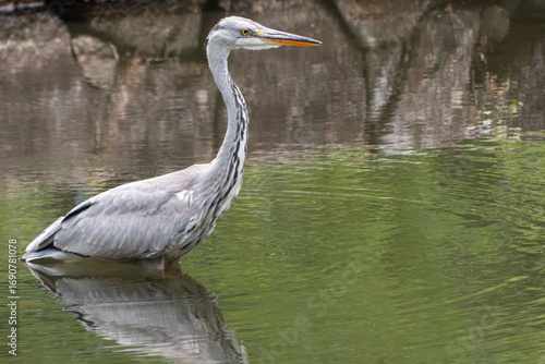Fototapeta premium 城跡公園のお堀にアオサギ 滋賀県大津市膳所城跡公園