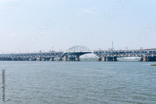 Obraz premium 京葉線荒川橋梁と荒川河口橋