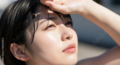 © Blue Studio, Obraz premium 日射しが眩しい 手で遮る