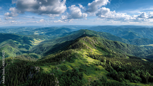 Obraz premium 美しい緑が広がる夏の山並みの風景
