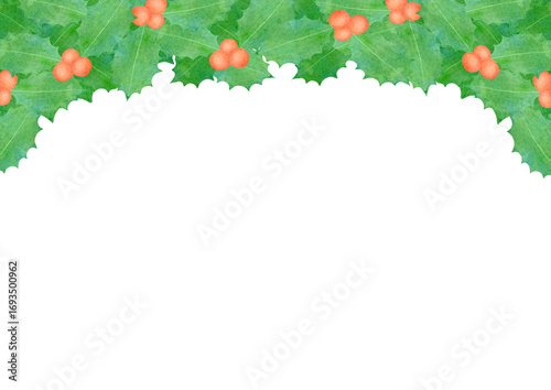 © Mami, Obraz premium ヒイラギと赤い実の水彩クリスマス背景パターン