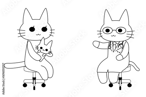 Fototapeta premium 診察を受ける母猫と子猫キャラクターのイラスト