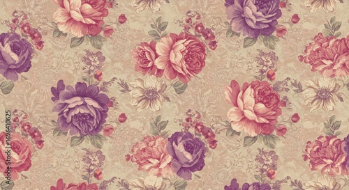 Obraz premium ピンク紫薔薇柄の美しい花柄生地