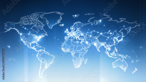 © MEO, Fototapeta premium 세계 지도를 디지털 네트워크로 표현한 글로벌 연결 개념