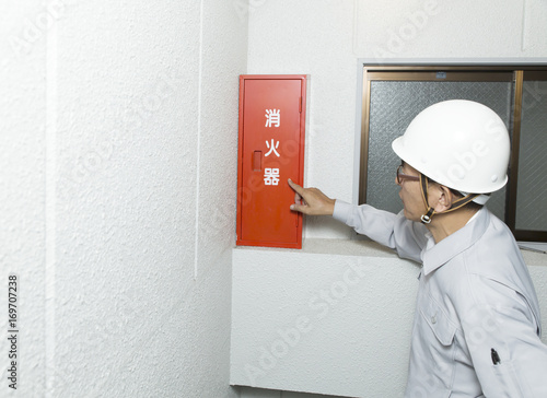 Obraz premium 働く人 消防設備 消火栓の確認