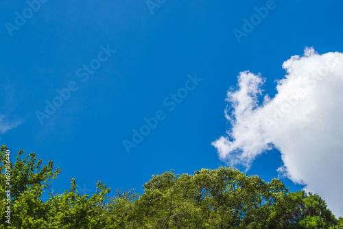 Obraz premium 森から見上げる晩夏の青空と雲02