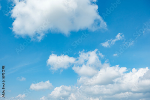 Naklejka premium ふわふわした薄い雲と夏のようなさわやかな青空 風に流れる雲と美しい天気