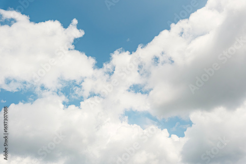Obraz premium ふわふわした薄い雲と夏のようなさわやかな青空 風に流れる雲と美しい天気