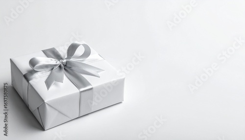 Obraz premium 白いプレゼントボックス、銀色のリボン