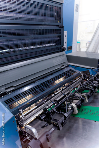 © chikala, Obraz premium オフセット印刷機の給紙部のクローズアップ