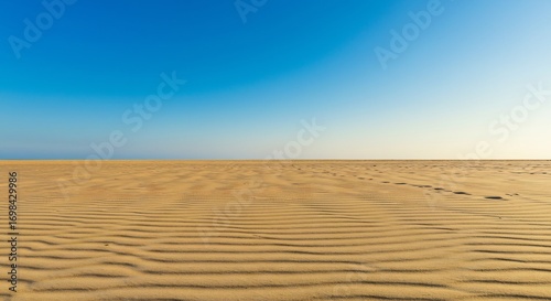Naklejka premium 広大な砂漠、輝く太陽の下で穏やかに広がる砂丘風景