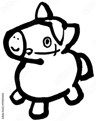 Obraz premium 筆絵 馬の玩具 モノクロ