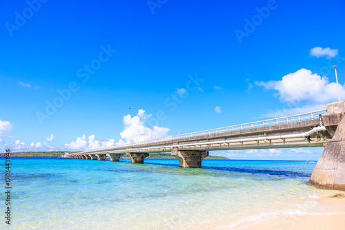 Fototapeta premium 9月の宮古島 来間大橋と快晴の空